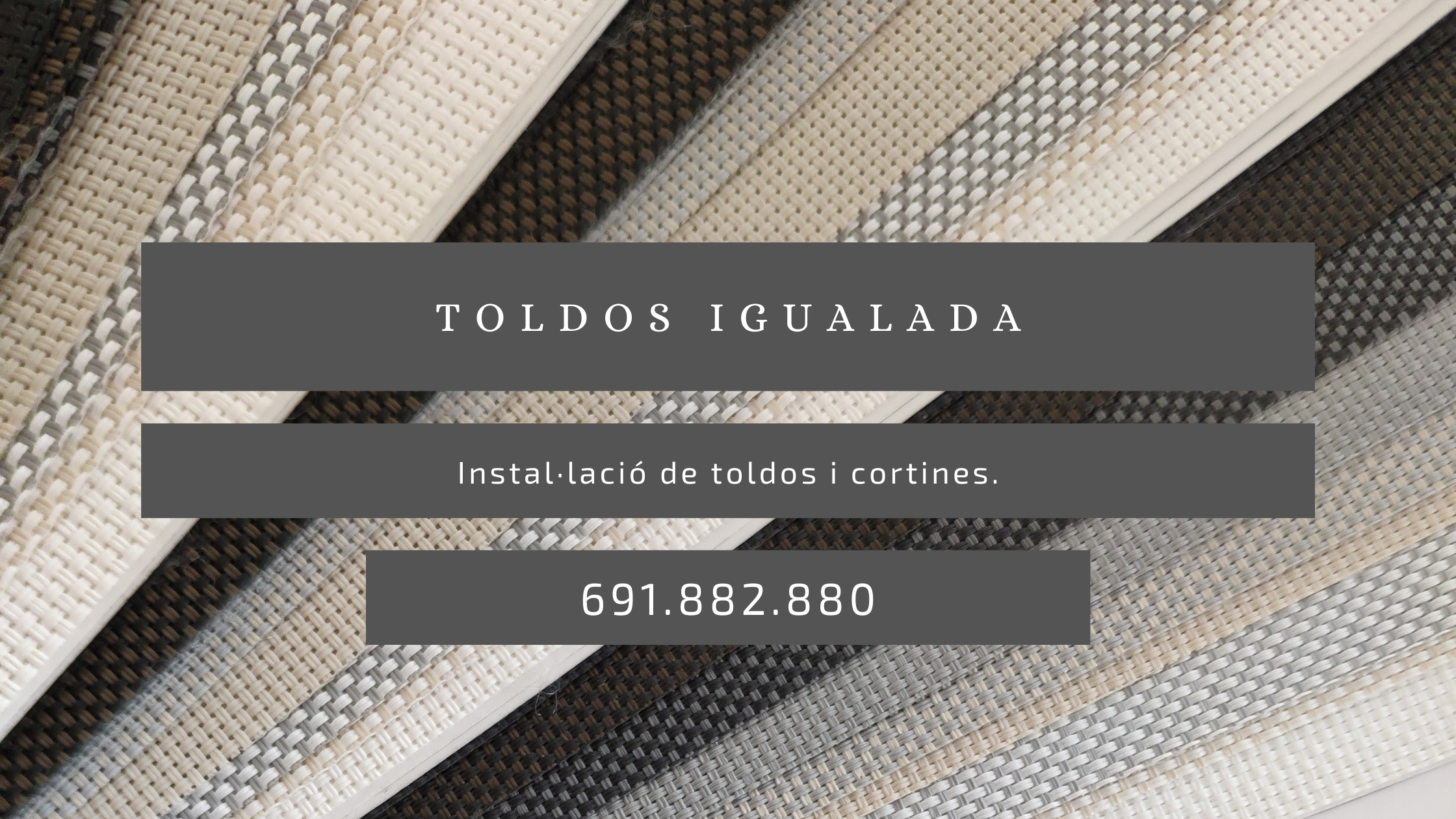 Amb més de 20 anys d’experiència en la instal·lació de toldos i cortines, treballant a Barcelona i altres poblacions de Catalunya, estem a Igualada per oferir els nostres serveis i experiència en la instal·lació de tot tipus de toldos i cortines.